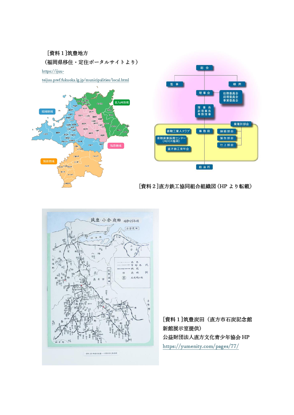 • 81191_31781042_1_1_資料1・2_page-0001 (資料1)筑豊地方(筑豊百景プロジェクトより転載)・筑豊炭田(直方市石炭記念館新館展示室より提供)(資料2)直方鉄工協同組合組織図(HPより転載)  (2025.11.8筆者作成)