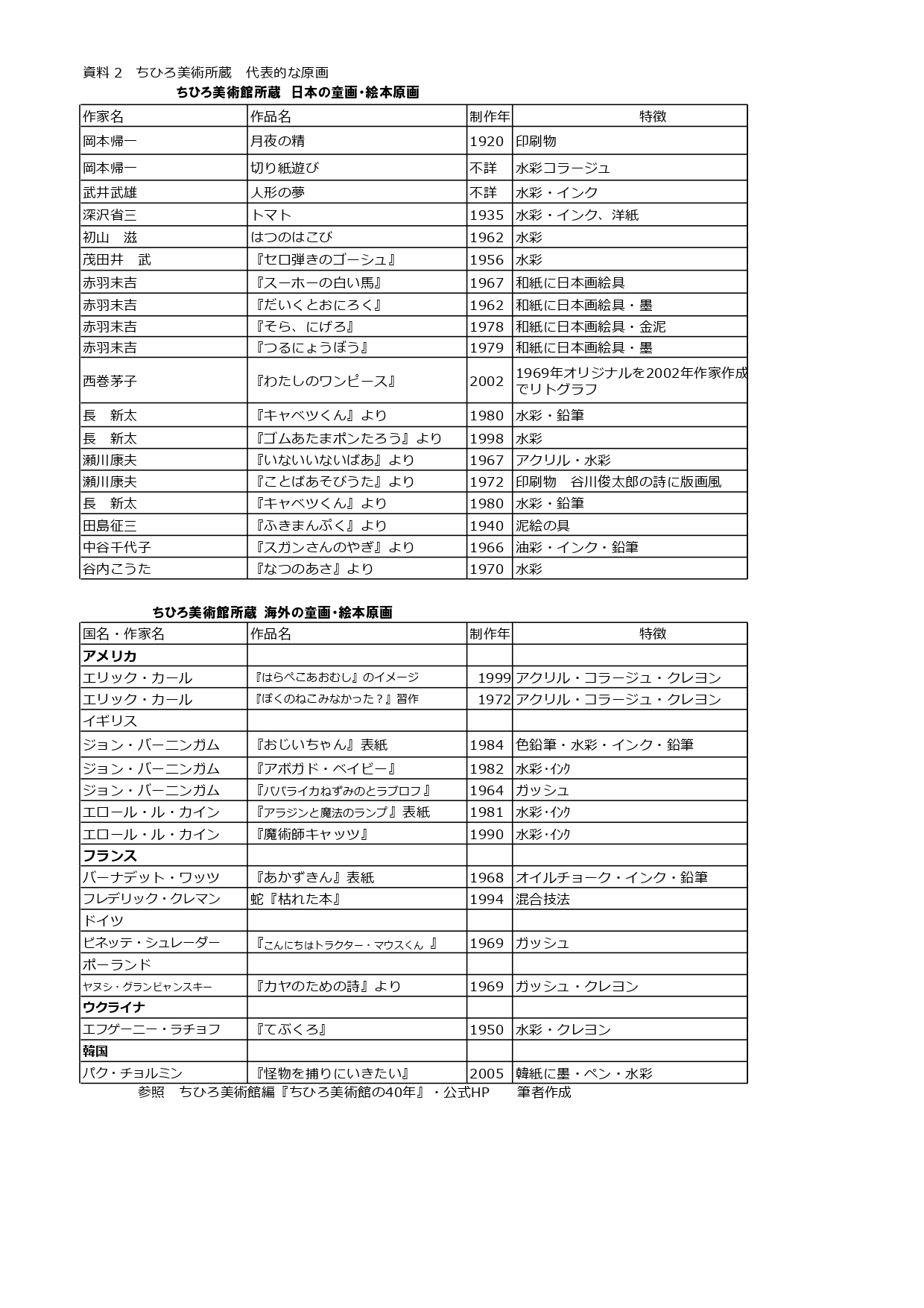 資料2 ちひろ美術館所蔵 童画・絵本原画 (筆者作成)