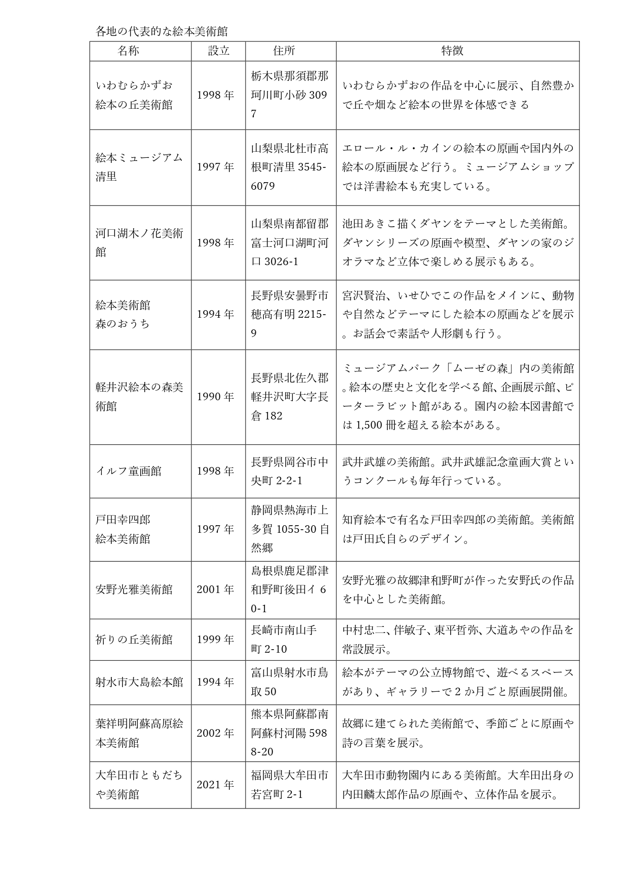 資料6 各地の代表的な絵本美術館(筆者作成)