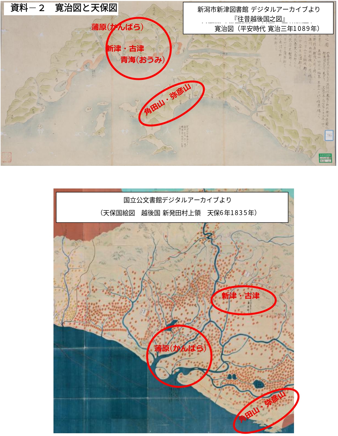 資料-2 寛治図と天保図(新潟県立図書館編『県立図書館で調べよう 新潟県の古地図 「寛治図」・「康平図」から近代まで』より) -