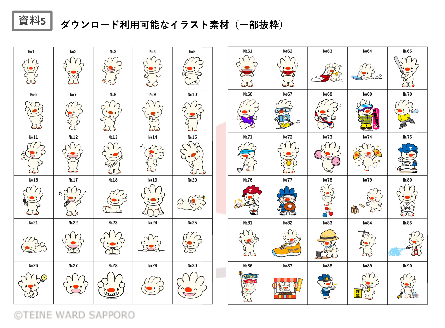 資料5 ダウンロード可能なイラスト素材(札幌市手稲区役所ホームページより、一部抜粋) -