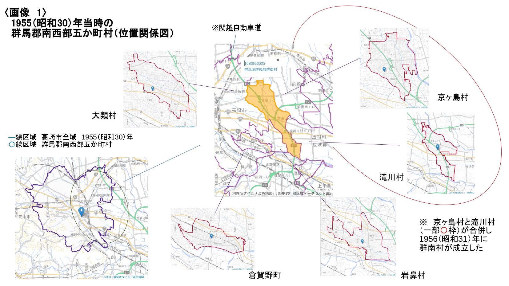 (画像1) 群馬県高崎市 [10202A1968] | 歴史的行政区域データセットβ版 、2026年1月27日参照、筆者作成。