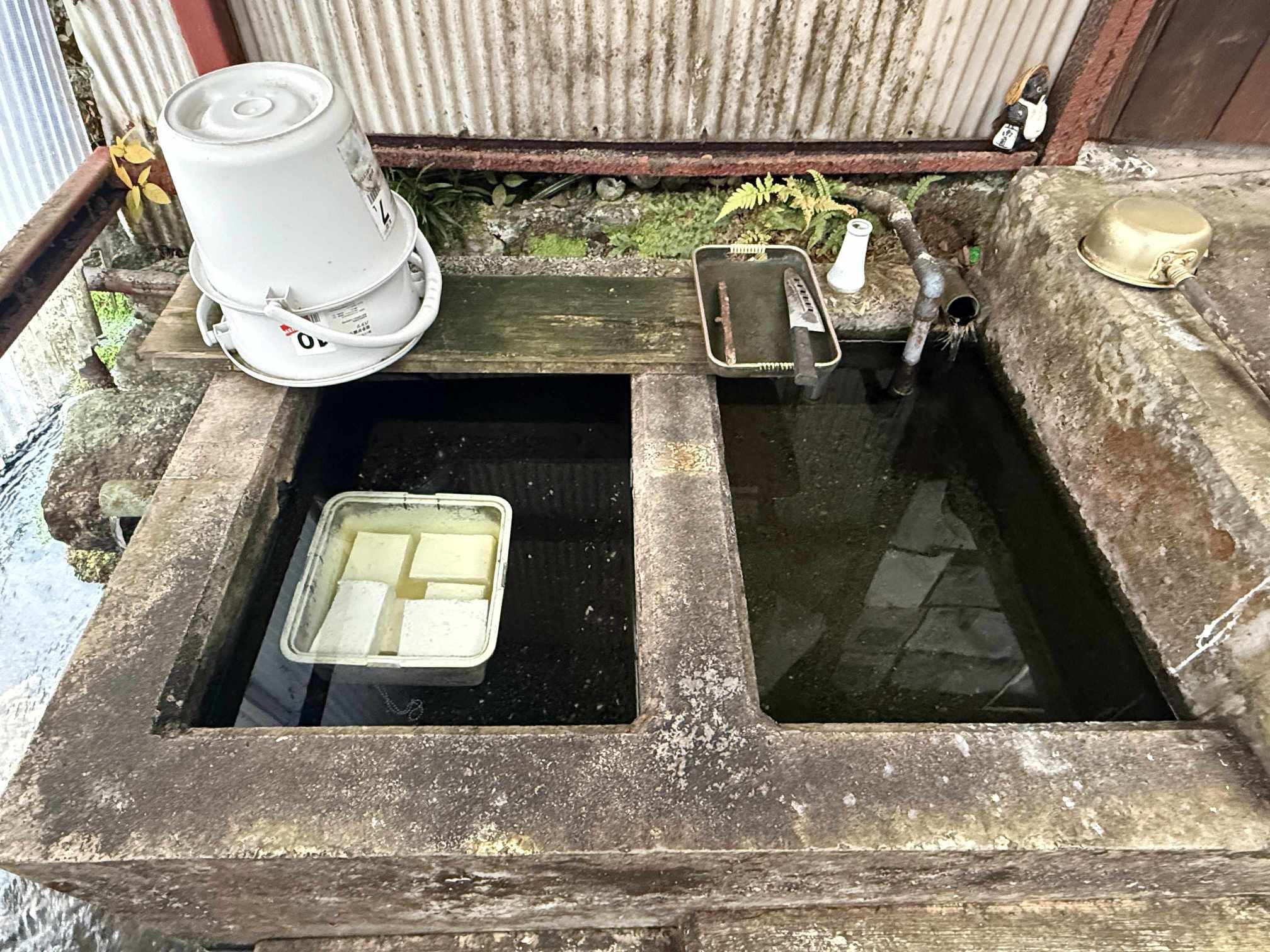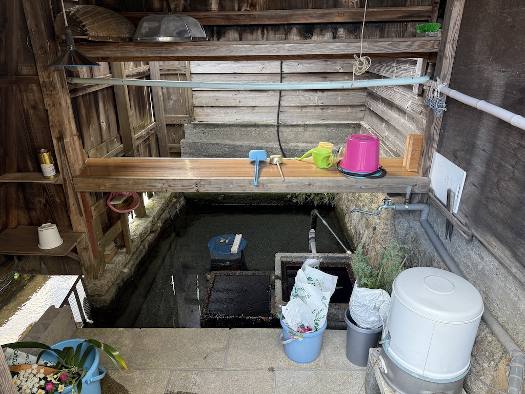 • 554246_6 たとえ家がなくなっても、暮らしの基盤だったカバタは壊さずに残され、地域の水の文化を伝える存在になっている。カバタの内部は用途に応じて区分されており、中心部の「元池」を起点に、鉄管の周りの「壺池」、さらに外側の「端池」へと水が巡るつくりになっている。