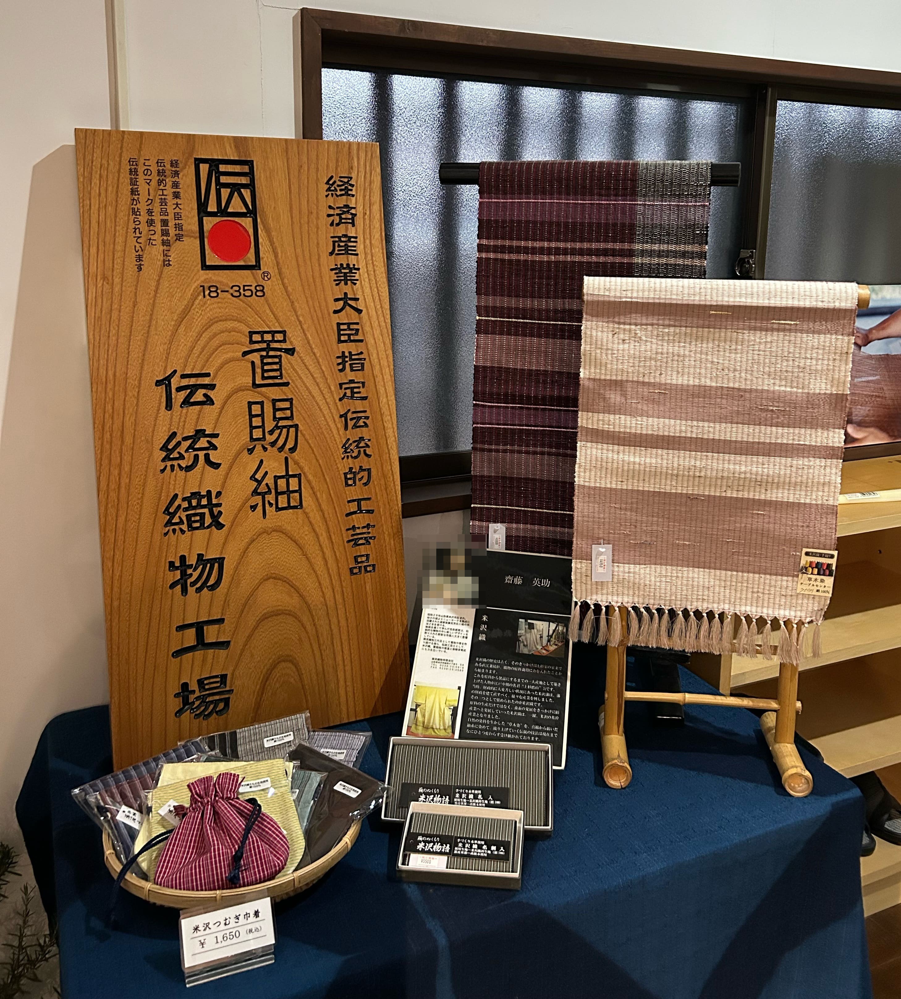 [資料7]伝統的工芸品指定工場の看板と米沢織の和小物