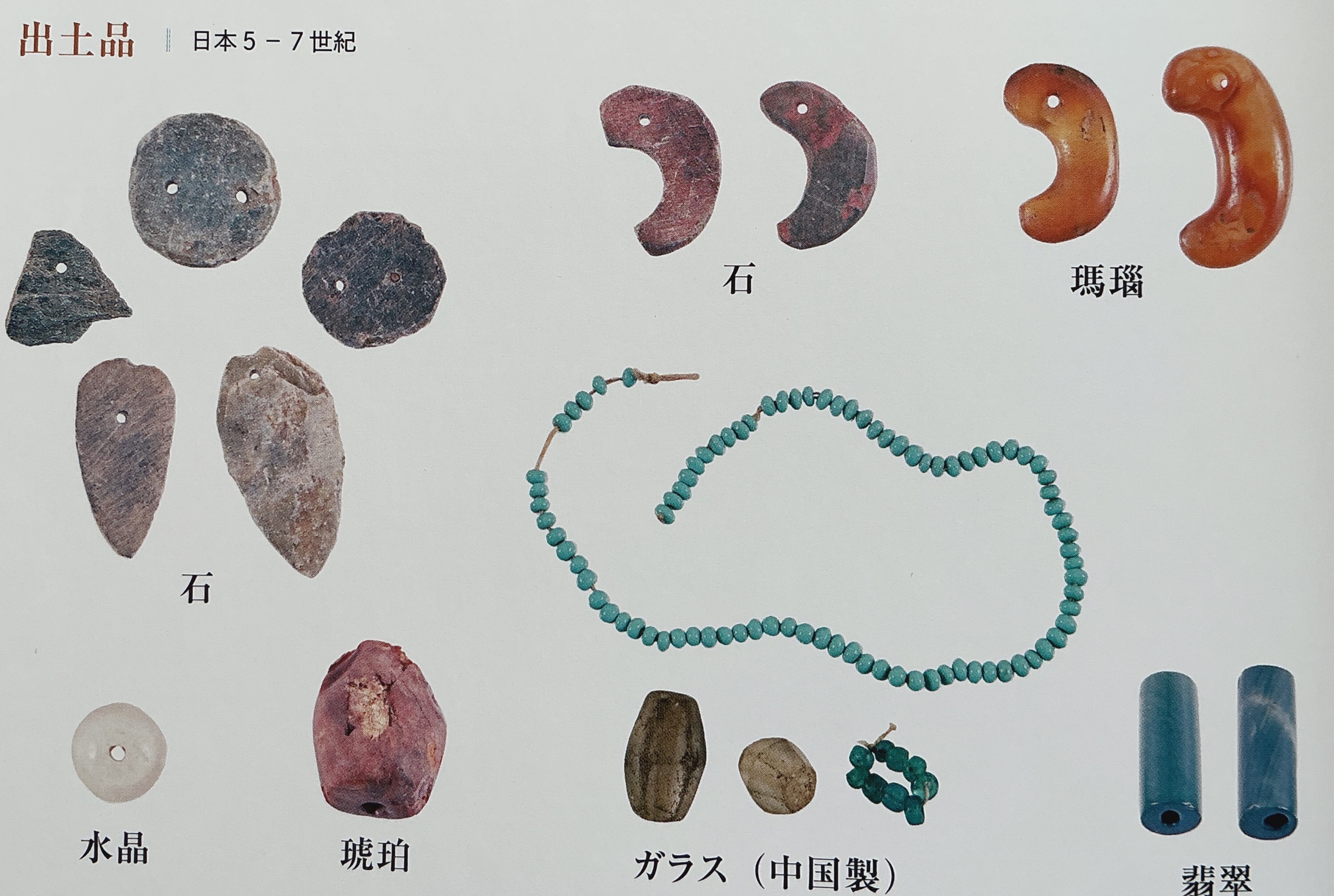 日本5~7世紀に出土された装飾ビーズ(再編集されているビーズも含む)