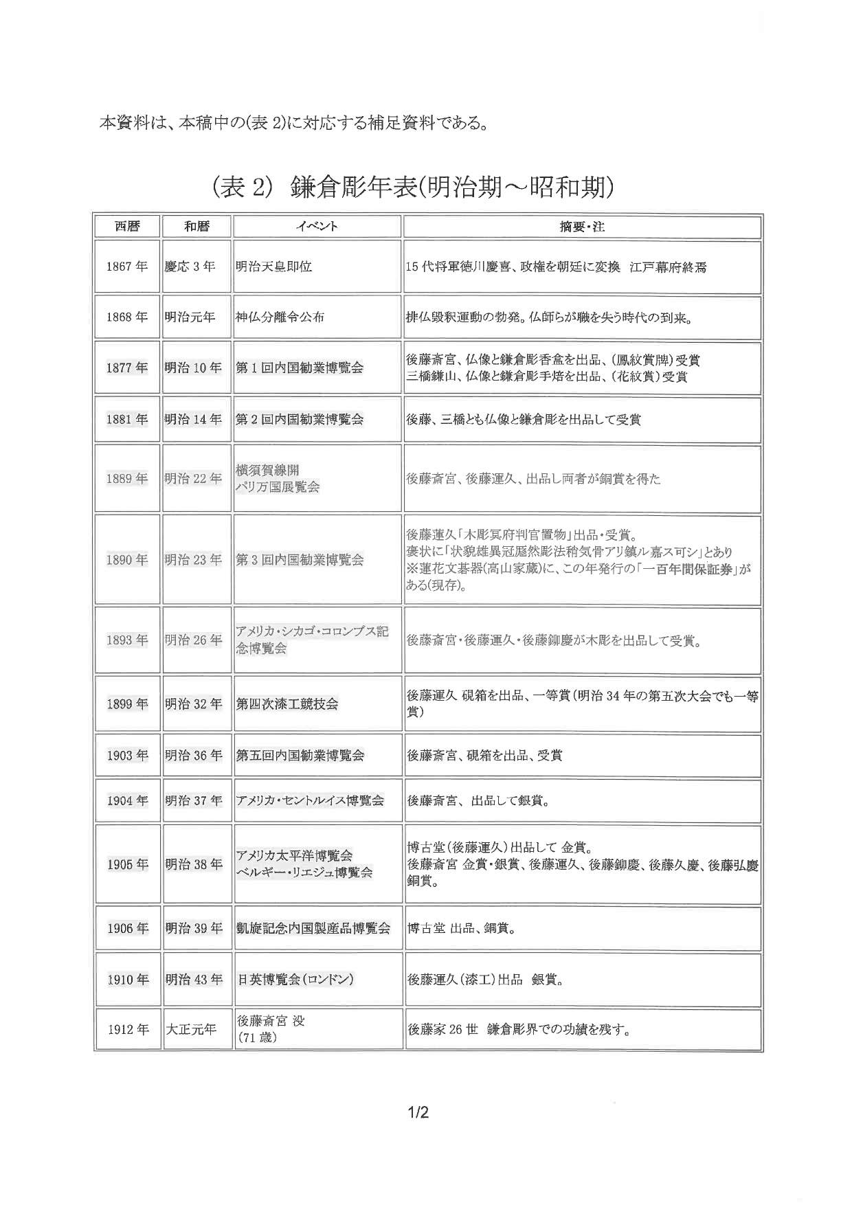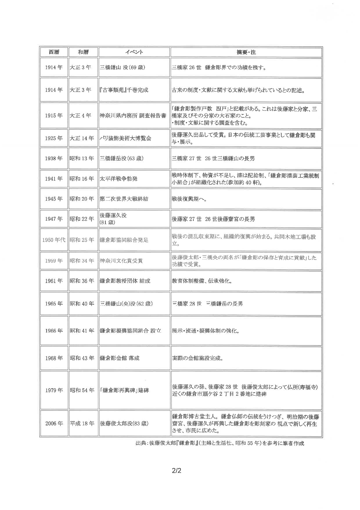 表2 鎌倉彫年表(明治期~昭和期)