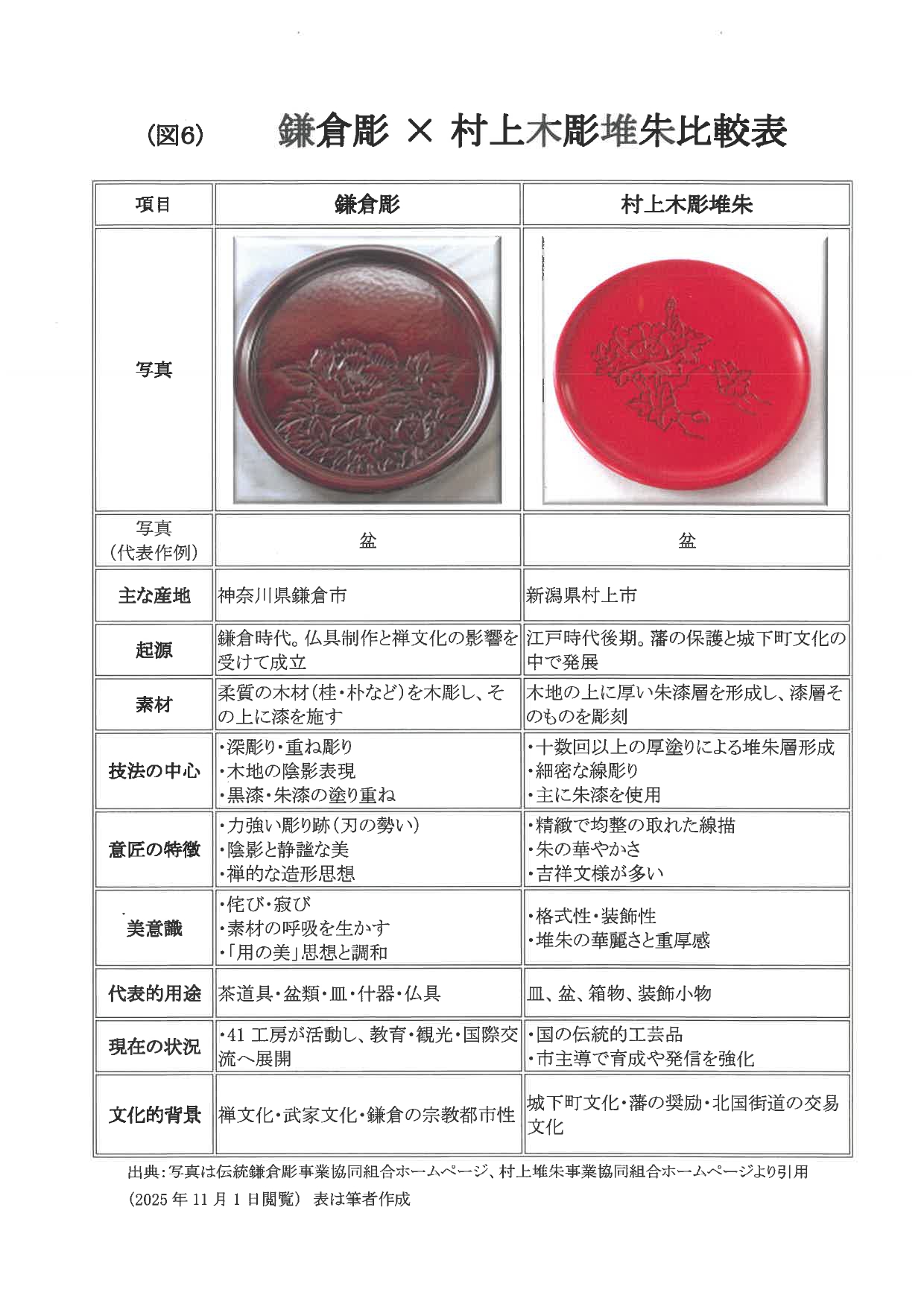 出典:写真は伝統鎌倉彫事業協同組合および村上堆朱事業協同組合公式ウェブサイトより引用、表は筆者作成。