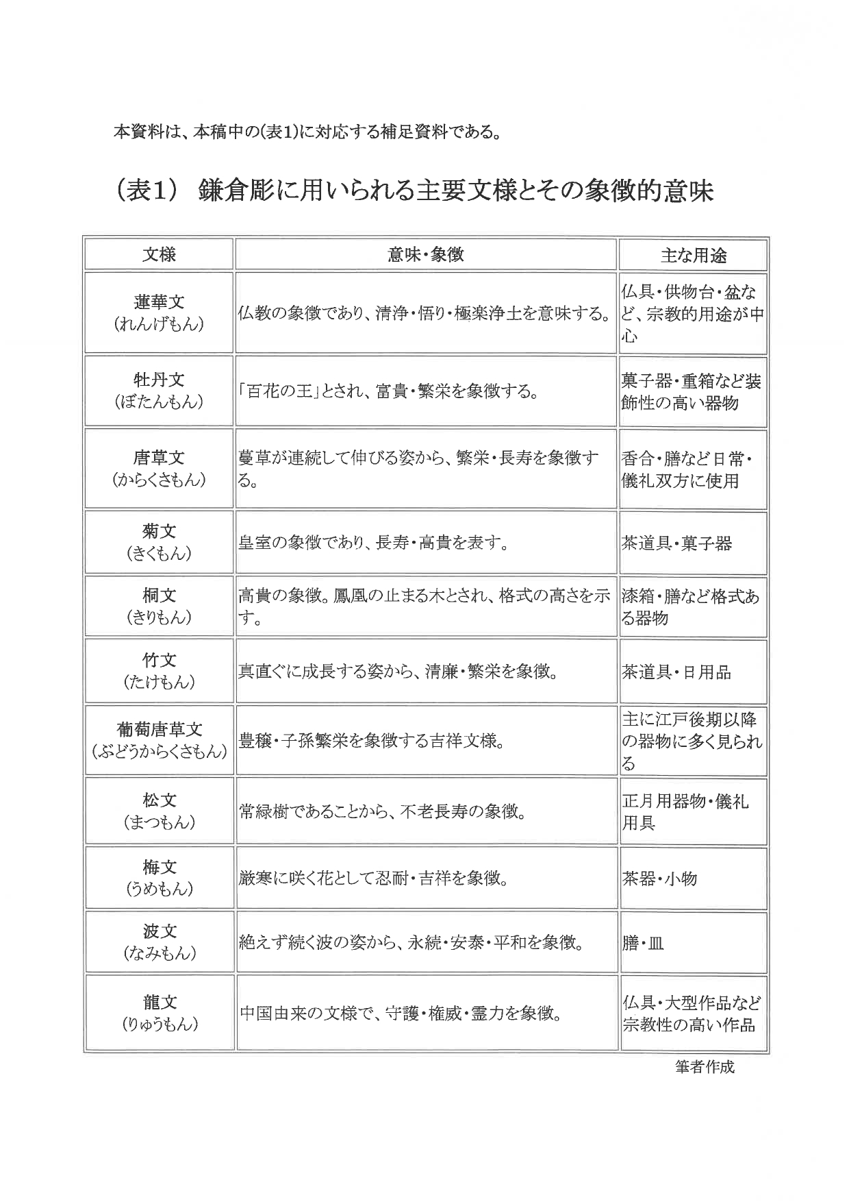 表1 鎌倉彫に用いられる主要文様とその象徴的意味