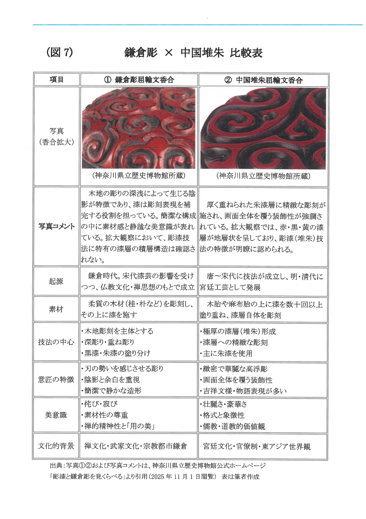 図7 鎌倉彫と中国堆朱(屈輪文香合)の比較表